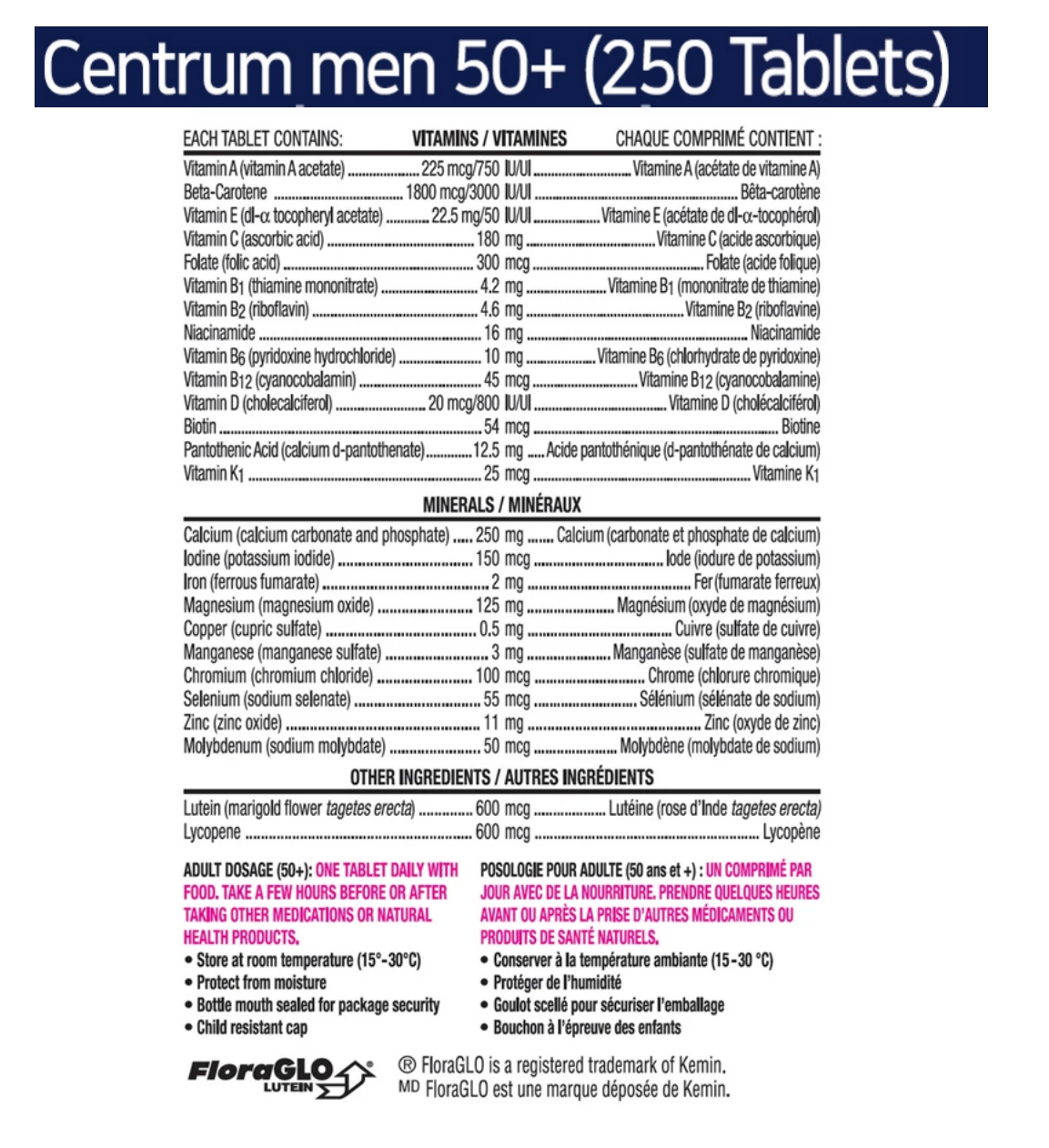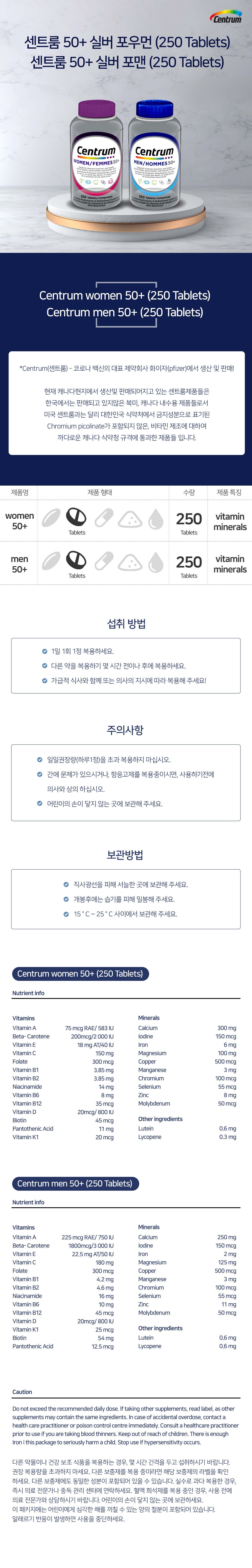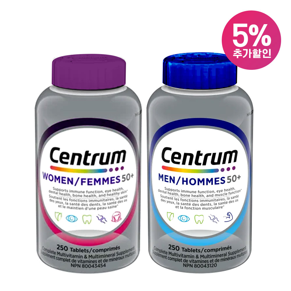 센트룸 캐나다 내수용 100% 정품 250정 대용량 50+ 남성+여성 종합 멀티비타민